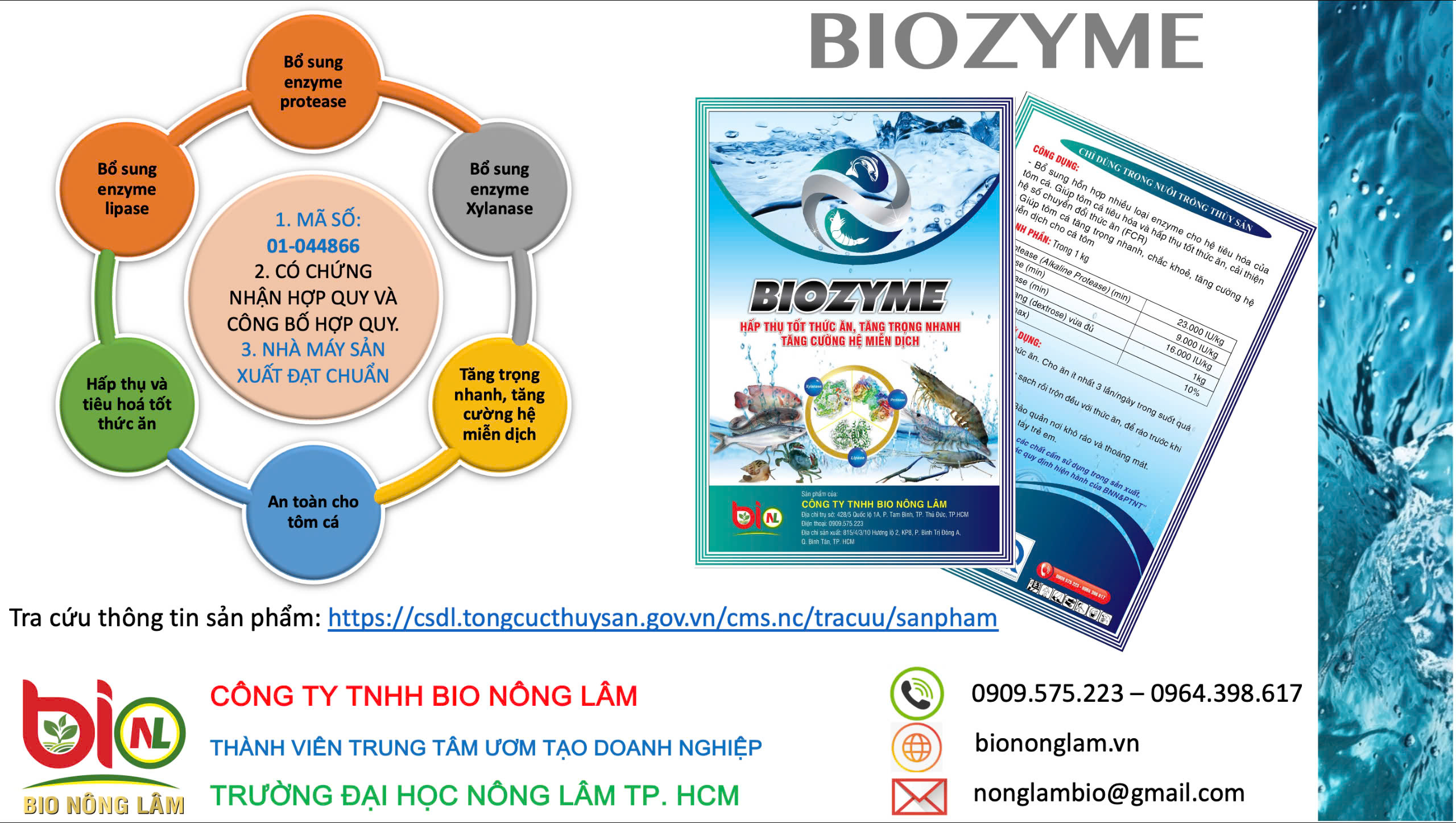 Sản phẩm là sự kết hợp của các loại enzyme như Protease, Lipase, Xylanase,... giúp tôm cá chuyển hoá thức ăn nhanh, cải thiện hệ số chuyển hoá thức ăn. Từ đó giúp tôm cá tăng trọng tốt,  sinh trưởng và phát triển nhanh, khoẻ mạnh, chắc khoẻ.